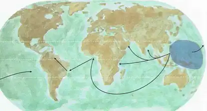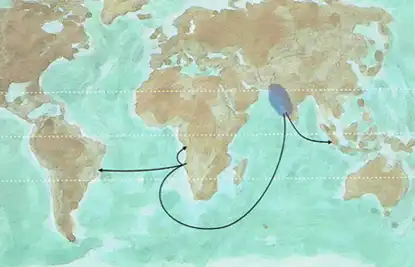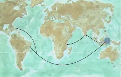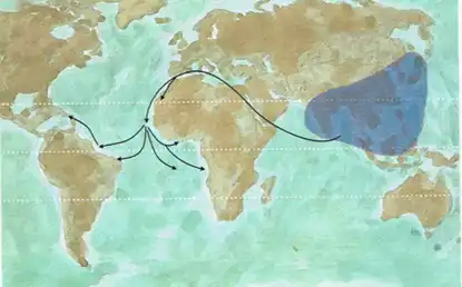 “For crop transferences between Asia and Africa and America, the Portuguese are again presumed to have been largely responsible. To them, for want of other evidence, are attributed the introduction of coconuts and Asiatic, rice to West Africa, of eddoes (Colocasia) to America, and the fact that in India such American plants are recorded as pineapples in 1583, papaya in 1600 and sweet potatoes in 1616.” (Masefield 1967, p.286)[1]