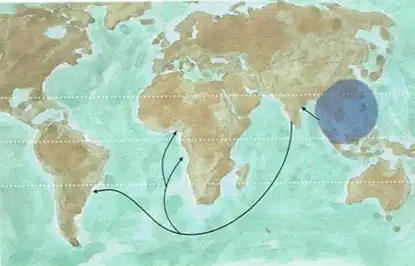 - The coconut “originates on the islands of Polynesia or South-East Asia. Some authors suggest it has its origins in America, or at least that the coconut already existed there before the Europeans arrived. These two points of view have not achieved wide acceptance and are based on the fact that the Portuguese first encountered the coconut in India and introduced it to Cape Verde and America in an unusual way. The Portuguese appear to have learned from Oriental seafarers that carrying coconuts aboard ship was a useful source of fresh food and water, being easy to keep and of enormous value on long voyages. Either intentionally, or simply using the coconuts they did not consume, they sowed coconuts in Cape Verde at the beginning of the sixteenth century.” (Ferrão 2005, p.211) “Gabriel Soares de Sousa mentions that the first coconuts reached Brazil from Cape Verde, ‘from where they spread throughout the world’. The Portuguese found the coconut palm already growing on the East African coast, according to descriptions provided by the Via do Conde Pilot.” (Ferrão 2005, p.211-2)